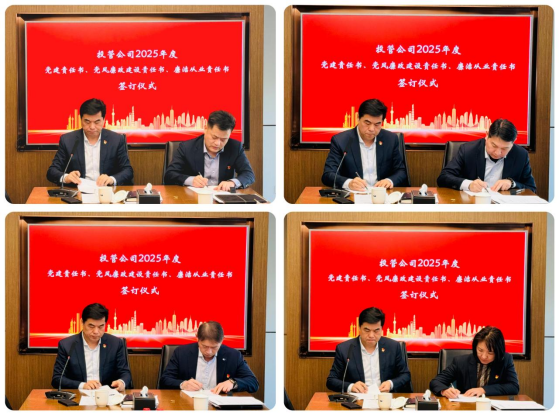 为进一步健全全面从严治党体系,会上投管公司党委与各党支部签订了《党建工作责任书》、与党员领导干部及各支部书记签订了《党员领导干部党风廉政建设责任书》、与非党员领导干部签订了《干部廉洁从业责任书》。